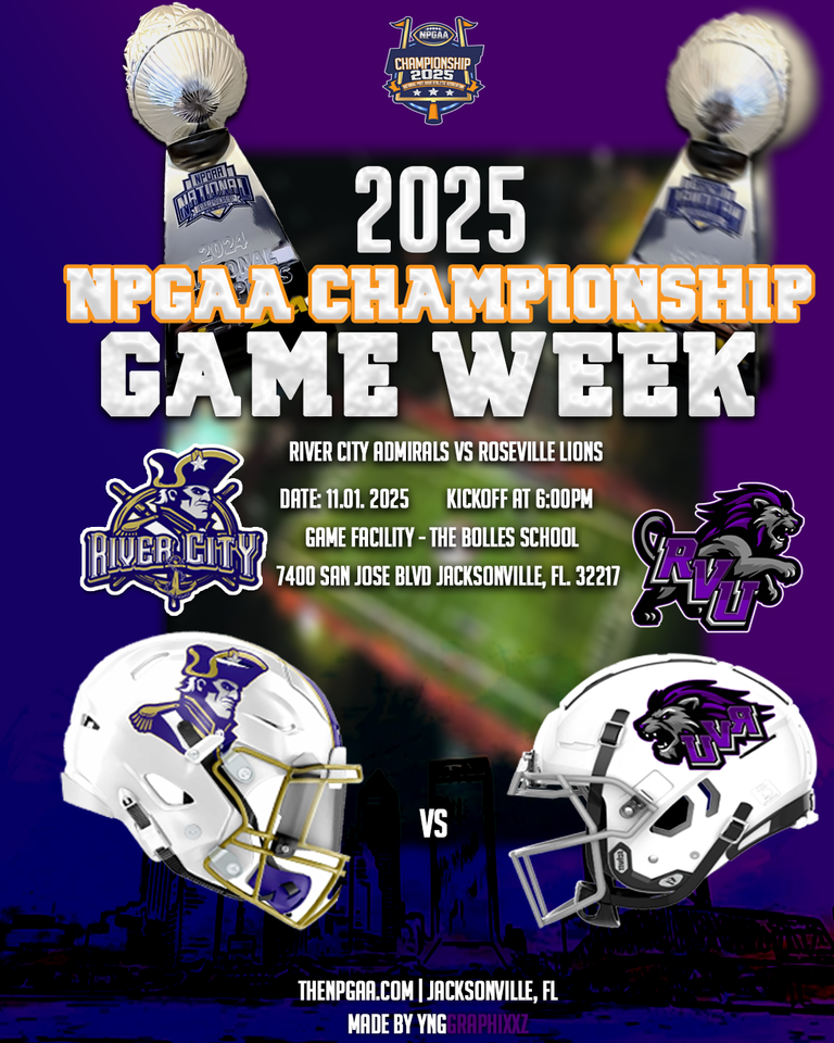 For the second straight season in a row the Roseville Academy Lions and River City Prep Admirals will meet in the NPGAA Championship Game. The two teams have battled and played each other close in every game they have played over the past 2 seasons and have made each game a classic. Get ready for another one as these two teams battle for the title and trophy for the 2025 NPGAA Championship!